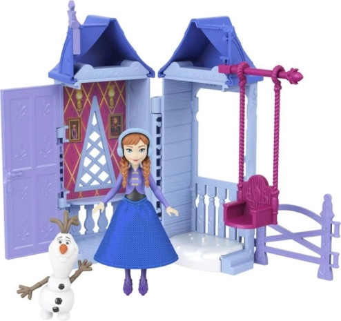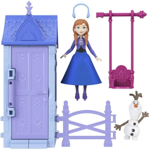 La variante avec la poupée ANNA propose des portes ouvrantes et une balançoire fonctionnelle pour des scènes amusantes avec OLAF. Idéal pour raconter des histoires et jouer avec imagination.