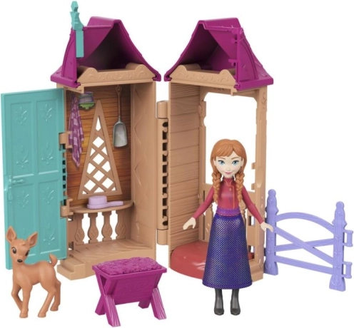 Choisissez parmi différentes variantes avec accessoires et fonctions distincts, comme des portes ouvrantes, des maisons pliables, un toboggan ou une balançoire. Chaque boîte contient une mini-poupée ANNA ou ELSA, un ami animal (par ex. SVEN ou OLAF) et des accessoires thématiques pour un jeu interactif.