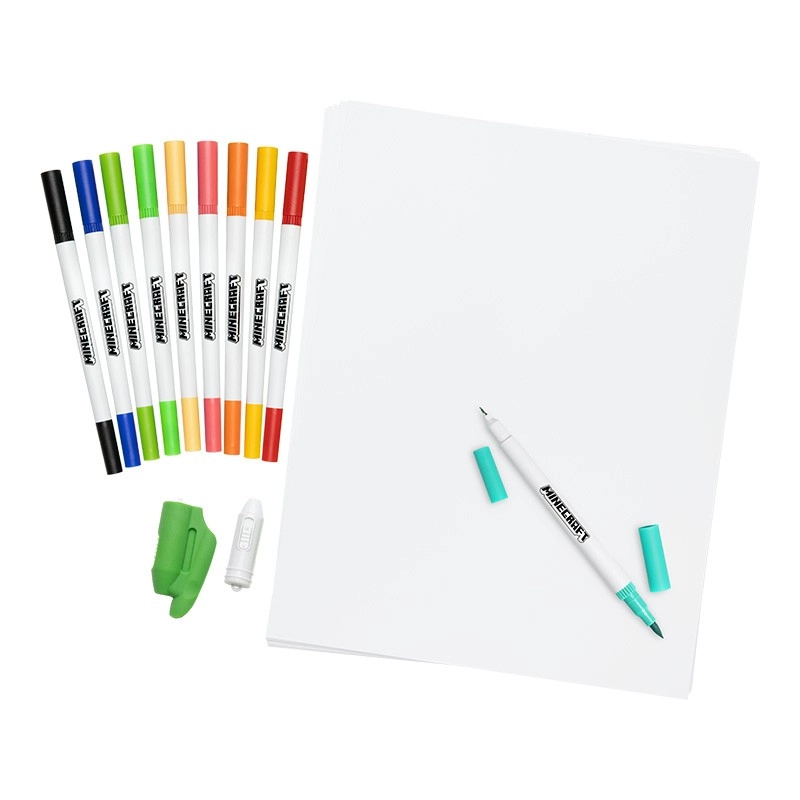 Le set comprend des marqueurs légers et double face avec une pointe fine et une plus large pour des lignes précises et un ombrage fluide. Idéal pour les croquis, le décalquage et le coloriage de motifs Minecraft.