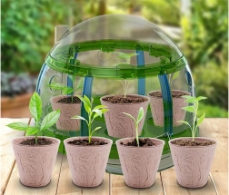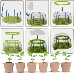 Créez un petit jardin à la maison et observez l’évolution de la graine jusqu’à la plante adulte. La mini-serre décorative avec toit ouvrant et petites portes pour chaque pot offre des conditions idéales pour la germination. Les pots biodégradables peuvent être replantés directement en pleine terre – respectueux de la nature et sans salissures.