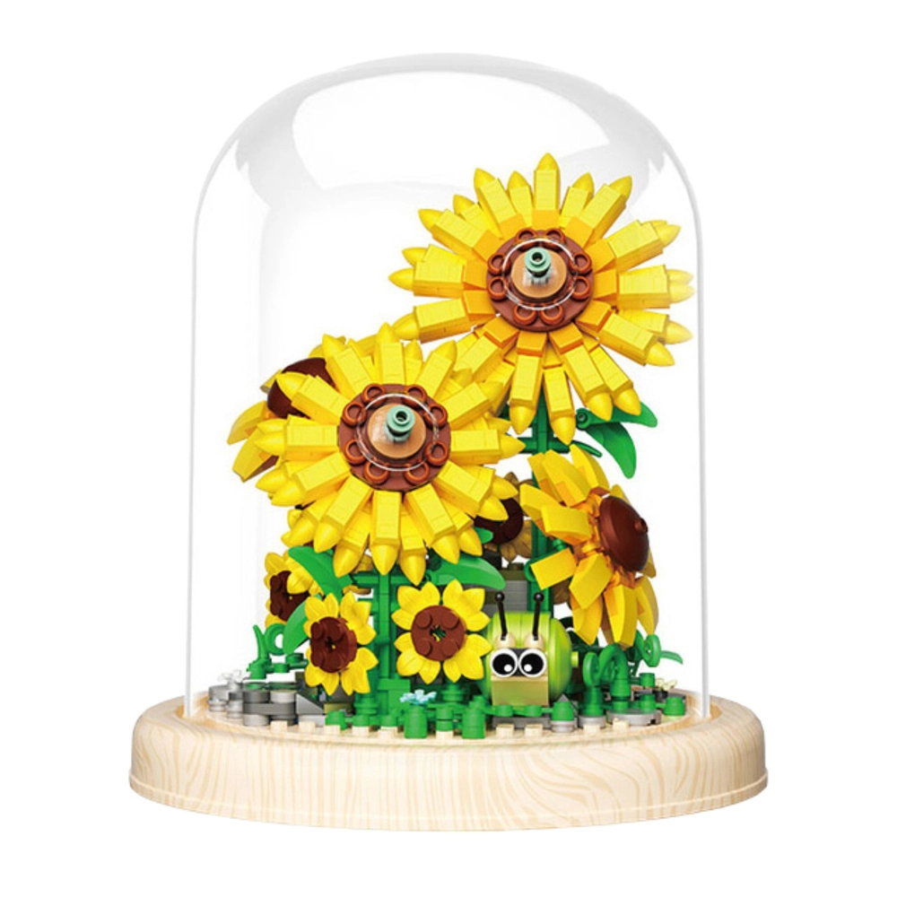 Kit de construction tournesols avec éclairage LED sous cloche, 633 pièces