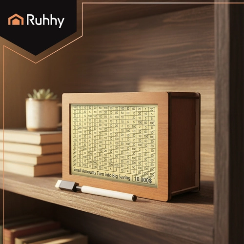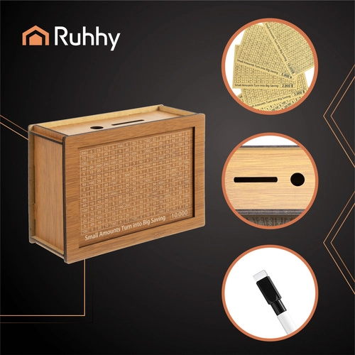 Vous cherchez une façon de créer une habitude financière et d’économiser avec le sourire ? Cette tirelire RUHHY en bois de qualité, avec cartes interchangeables et impression « 10 000 », transforme la mise de côté en un défi ludique. Suivez vos progrès, cochez les montants atteints et, grâce à sa construction fermée, vous n’accéderez à vos économies qu’une fois l’objectif atteint. Un cadeau idéal et un outil de littératie financière pratique pour enfants et adultes.