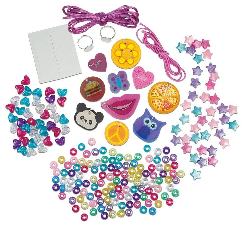 Le kit contient tout le nécessaire – des perles et pendentifs aux cordons et élastiques. La création est simple, sûre et amusante, idéale pour créer ensemble avec une amie ou avec les parents.