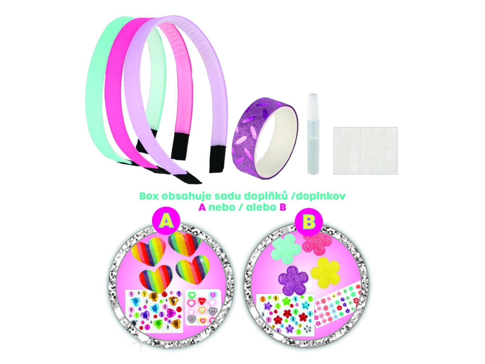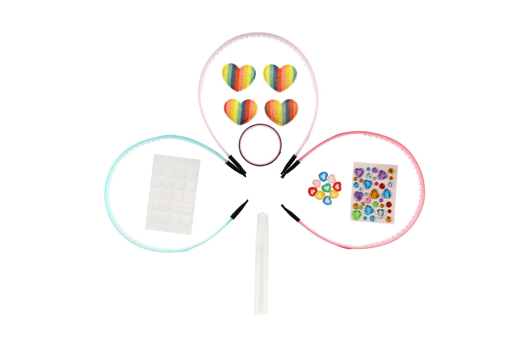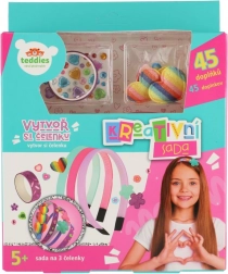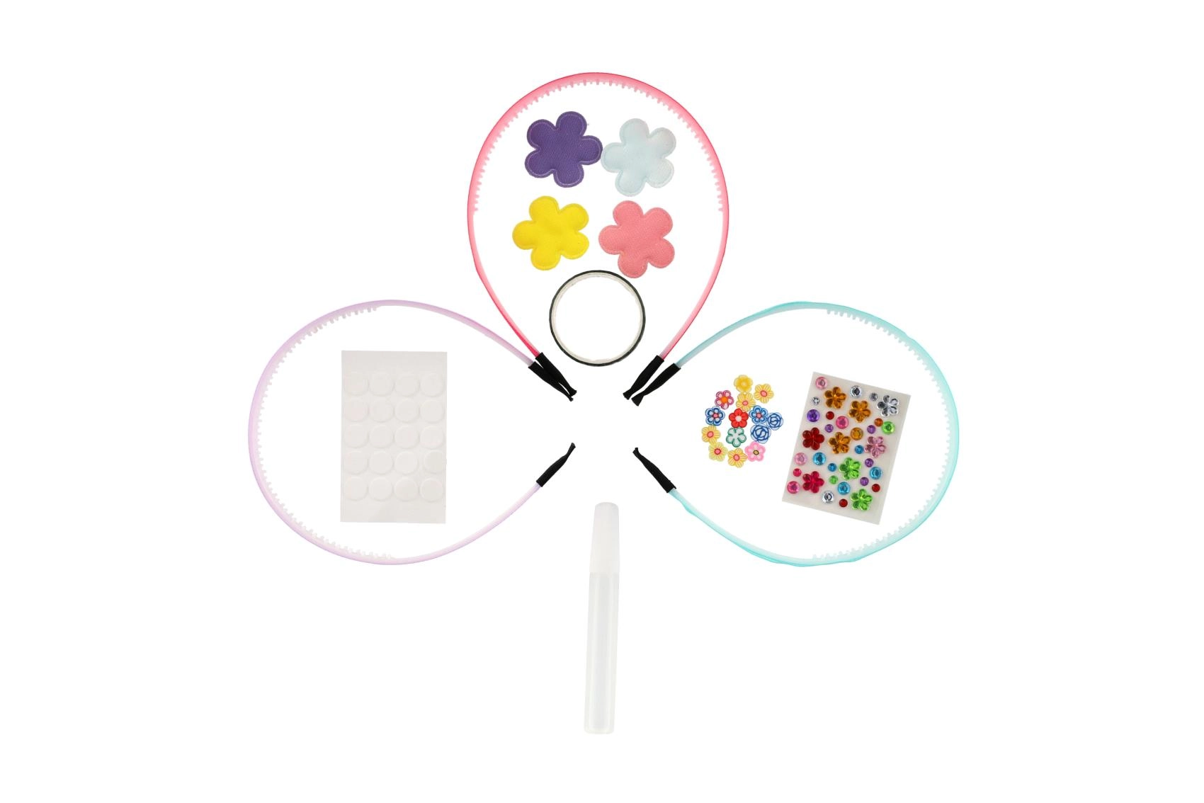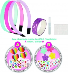 Créez des serre-têtes originaux exactement selon vos goûts. Le kit comprend trois serre-têtes de base et une large gamme de décorations, permettant des combinaisons uniques – des plus colorées et ludiques aux plus discrètes et délicates. La procédure simple convient même aux plus jeunes enfants, qui exerceront leur patience et leur motricité fine en bricolant.