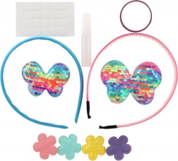 Des papillons, des cœurs et des fleurs ornés de sequins ou de paillettes donnent un effet waouh au serre-tête. Les enfants créent un look exactement selon leur imagination.