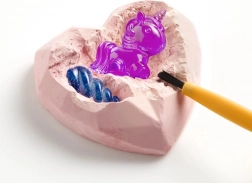 Découvrir n’a jamais été aussi amusant. Le bloc rose en forme de cœur renferme une licorne magique et une gemme bonus. Il suffit de prendre les outils fournis et de commencer à creuser – étape par étape, avec suspense et joie de la découverte.