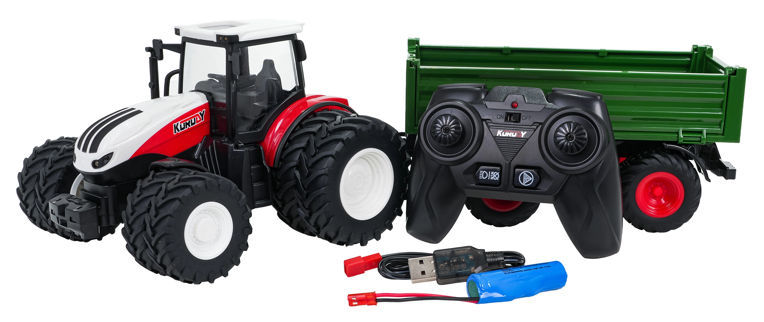- tracteur avec remorque, télécommande 2,4 GHz, batterie 3,7 V, câble de charge USB