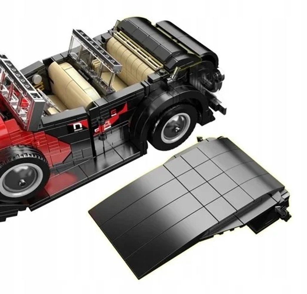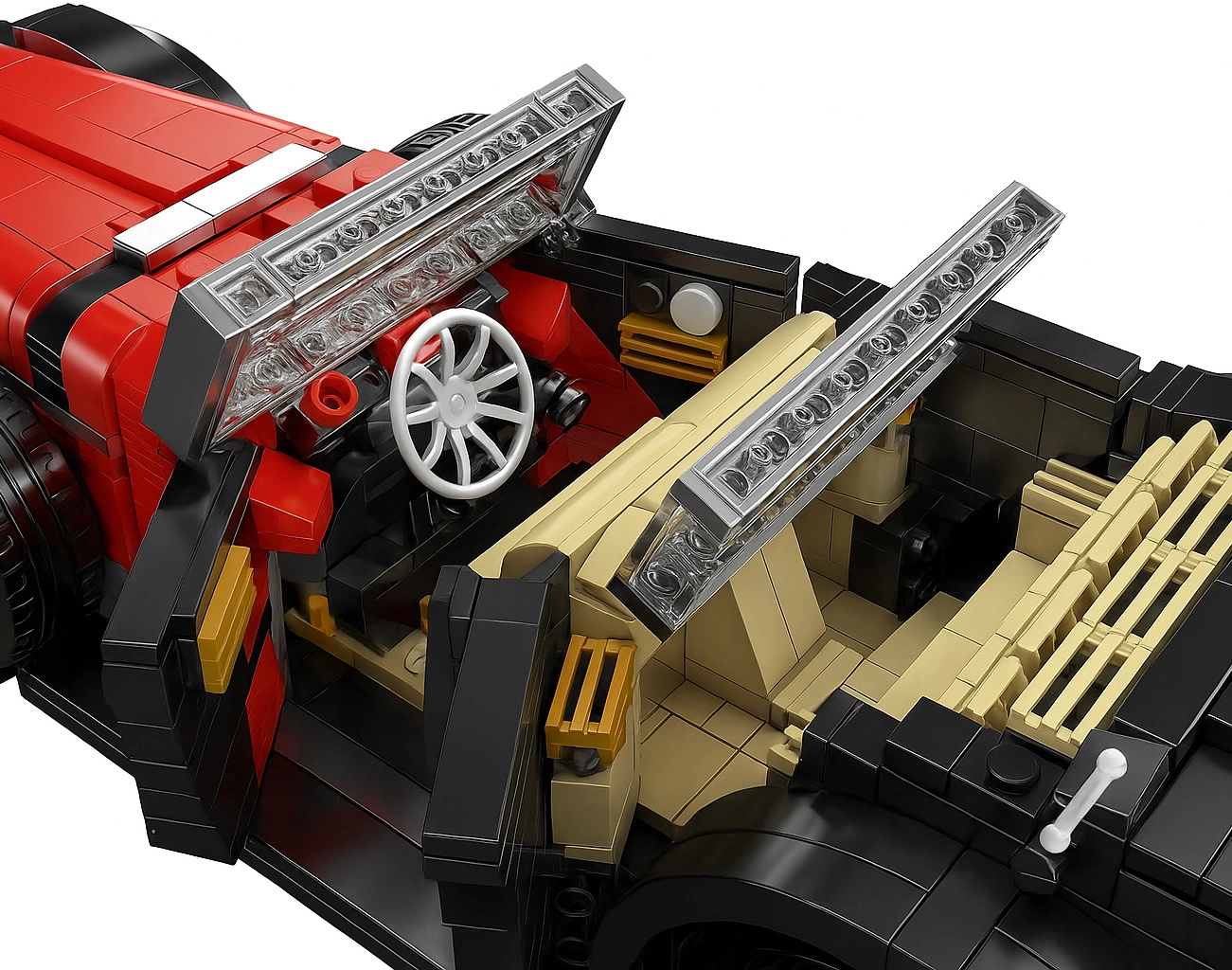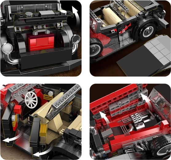 Grâce au toit amovible, transformez facilement le coupé en cabriolet ; les portes ouvrantes et le capot moteur révèlent d’autres détails réalistes. Les pneus en caoutchouc, les ailes marquées et les phares soulignent l’apparence authentique. Le kit convient aux adolescents plus âgés et aux adultes qui apprécient la combinaison du plaisir de construire et de la valeur décorative du modèle fini.