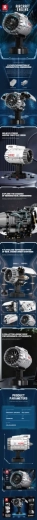 Le modèle est équipé d’un accumulateur 7,4 V et d’un boîtier pour piles afin de mettre le moteur en mouvement. Idéal comme maquette éducative pour les adolescents et les adultes souhaitant comprendre les principes de fonctionnement d’un moteur à réaction tout en profitant d’un assemblage ludique.