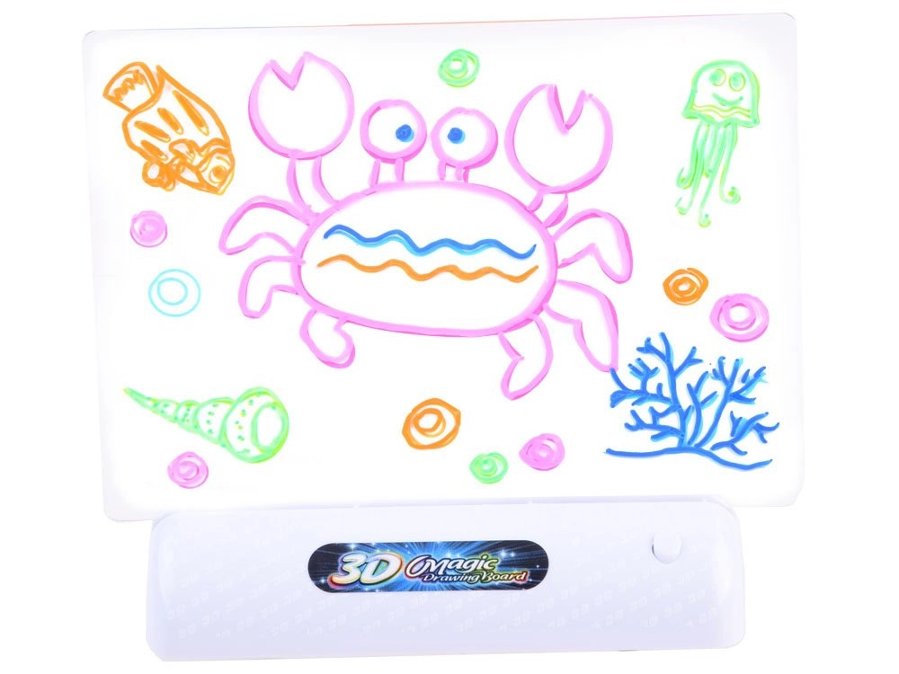 Tablette de dessin 3D magique avec rétroéclairage LED qui transforme les créations des enfants en images néon avec effet 3D. Grâce aux feutres fluorescents, aux lunettes 3D et à la plaque transparente réutilisable, c’est un excellent choix pour développer la créativité, l’imagination et la motricité fine des enfants dès 3 ans.