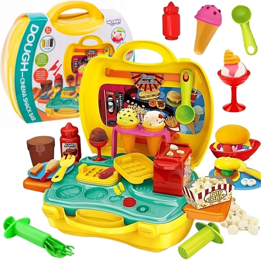 Le set pour enfants de la marque WOOPIE transforme le jeu en snack-bar en une aventure amusante. Dans une valisette compacte, vous trouverez un riche ensemble d’accessoires, de la pâte à modeler souple et non toxique ainsi que des moules pour pop-corn, frites, hot-dogs, hamburgers et glaces. Grâce à sa facilité d’utilisation et à des matériaux sûrs, il développe la créativité, la motricité fine et l’imagination des enfants dès 3 ans.
