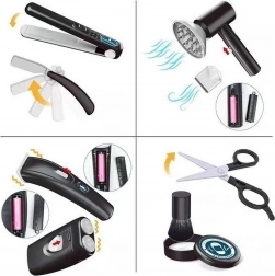 - Riche équipement 24 pcs : embouts, ciseaux, peignes, lisseur, miroir, rasoir et plus encore.