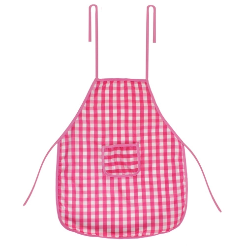 Motif léger à carreaux rose‑blanc avec liens au cou et à la taille pour un ajustement confortable. La petite poche pratique garde les petits ustensiles à portée de main.