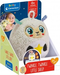 Adorable mouton interactif CLEMENTONI BABY Twinkle Twinkle offrant aux enfants dès la naissance de doux effets lumineux et sonores pour les apaiser et les divertir. Peluche toute douce, mélodies apaisantes et petites lumières délicates favorisent le développement des sens, de la motricité fine et du bien-être émotionnel. Matériaux sûrs et entretien facile en font un compagnon idéal pour le lit comme pour les déplacements.