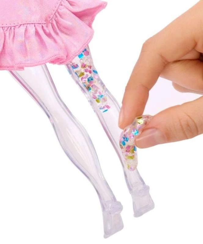 • Transformation interactive – insère le slime dans les jambes transparentes et change le look de la poupée.