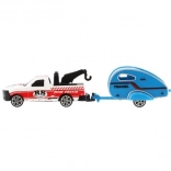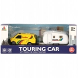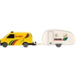 La voiture avec mini caravane est soigneusement détaillée pour éveiller l’intérêt pour le voyage et l’aventure.