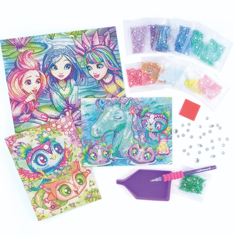 Le coffret comprend tout le nécessaire : applicateur à strass, 3 toiles avec motifs, env. 4500 strass, plateau de tri et guide en couleurs. La création est intuitive, apaisante et favorise la concentration ainsi que la patience.