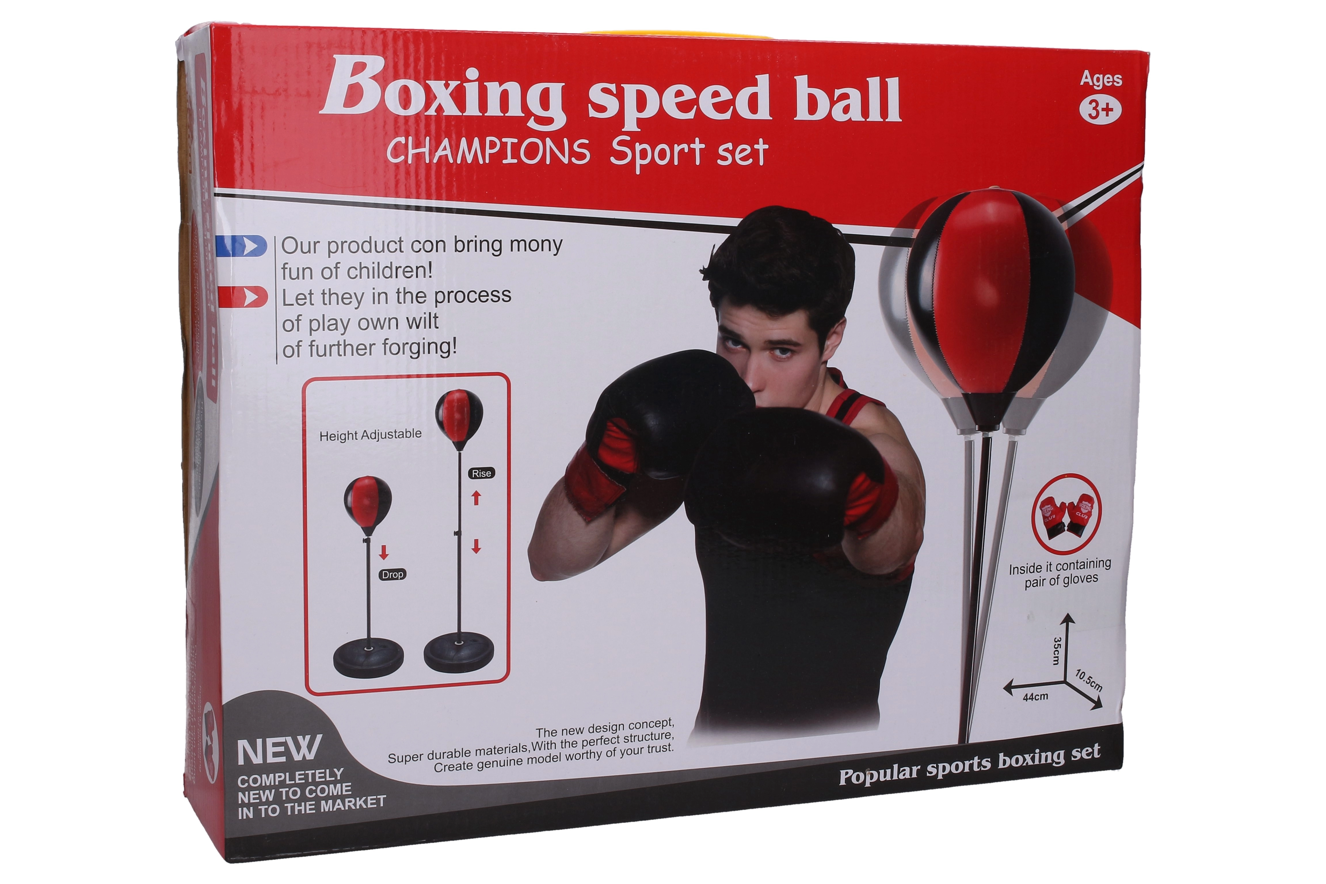 Set de boxe complet pour l’entraînement à domicile comprenant une poire de frappe à hauteur réglable, des gants, un kit de montage et une pompe. Idéal pour les débutants comme pour les sportifs loisirs. Profitez d’un entraînement ludique et efficace, améliorez votre condition et votre coordination grâce à une base stable et un assemblage facile. Hauteur réglable 69–109 cm, diamètre de la poire 22 cm, base stable 33 × 33 cm.