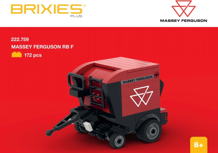 Découvrez le plaisir et la créativité avec la construction BRIXIES Plus et assemblez l’emblématique presse à balles rondes MASSEY FERGUSON RB F. Grâce aux pièces plus grandes, le modèle est facile à manipuler, convient aux jeunes constructeurs et ravira aussi les passionnés expérimentés de machines agricoles.