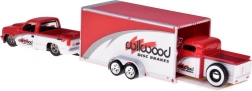 Un set de collection stylé à l’échelle 1:64 présente l’iconique CHEVROLET 454 SS Pick-up 1993 et la classique CHEVROLET Pick-up 1936 sur une remorque de transport. Les modèles en finition rouge et blanche disposent d’une carrosserie en métal, de roues en caoutchouc pour une conduite fluide et de décors détaillés. Le pick-up 454 SS est équipé d’un crochet d’attelage amovible, la remorque se connecte et se déconnecte facilement – idéal pour le jeu comme pour la vitrine.