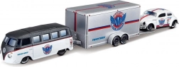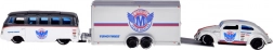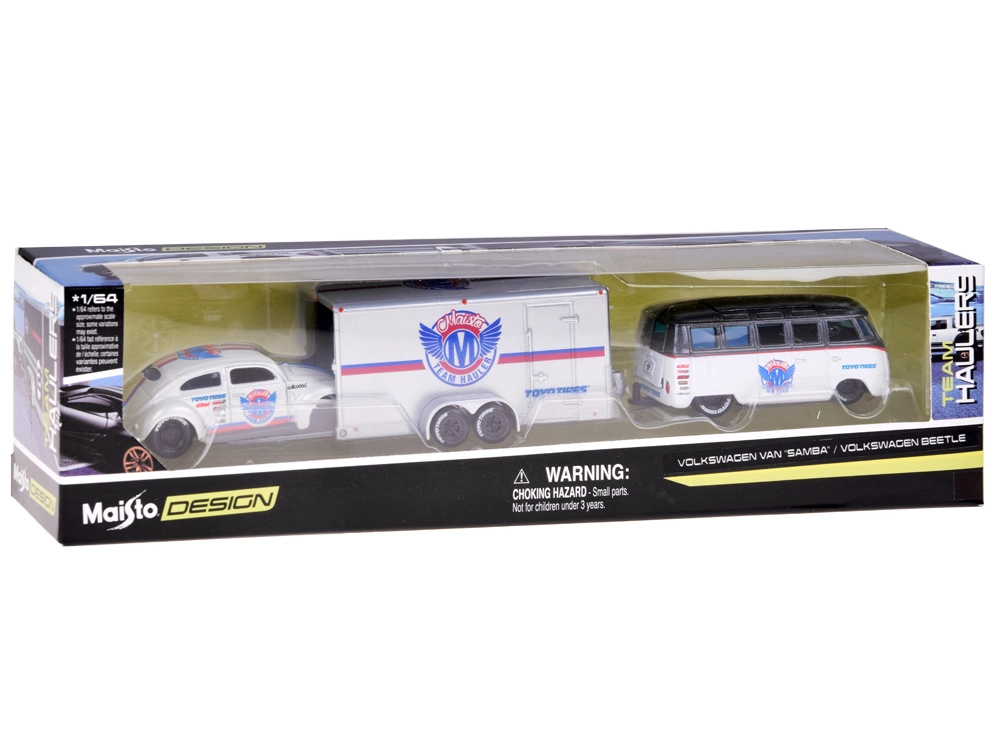 Le Volkswagen Van Samba est doté d’un crochet d’attelage pour fixer la remorque ; le crochet peut être démonté selon les besoins, et la remorque décrochée sans dévisser. L’ensemble est idéal pour les passionnés de voitures classiques, les collectionneurs à l’échelle 1:64 et les enfants qui aiment le jeu créatif.