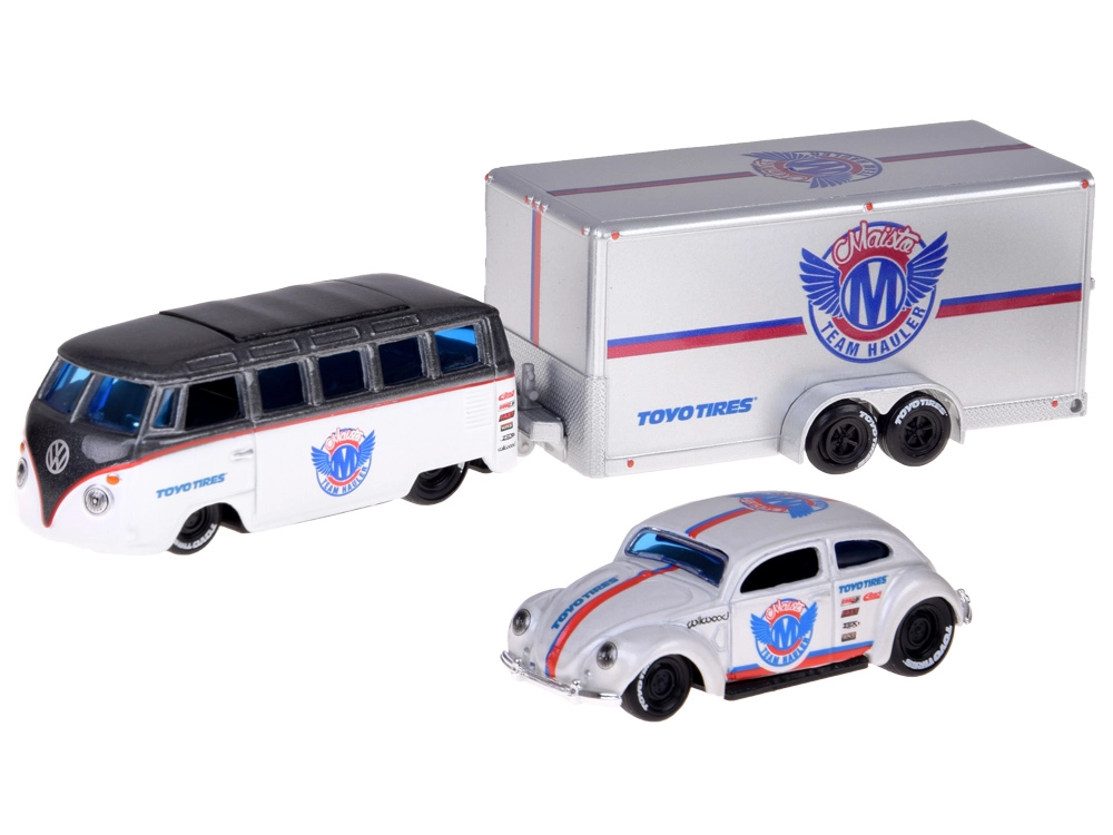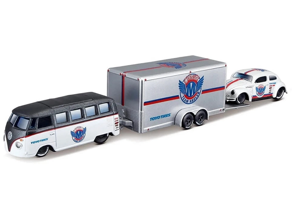 Découvrez le design intemporel des véhicules classiques dans la finition soignée de la marque Maisto. Le set, en élégante combinaison blanc‑argent, propose des carrosseries métalliques, des châssis en plastique pour la légèreté et une conduite fluide sur différentes surfaces grâce aux roues en caoutchouc. La Beetle se place aisément sur la remorque fournie, pour profiter à la fois d’un transport authentique et d’une exposition remarquable dans votre collection.