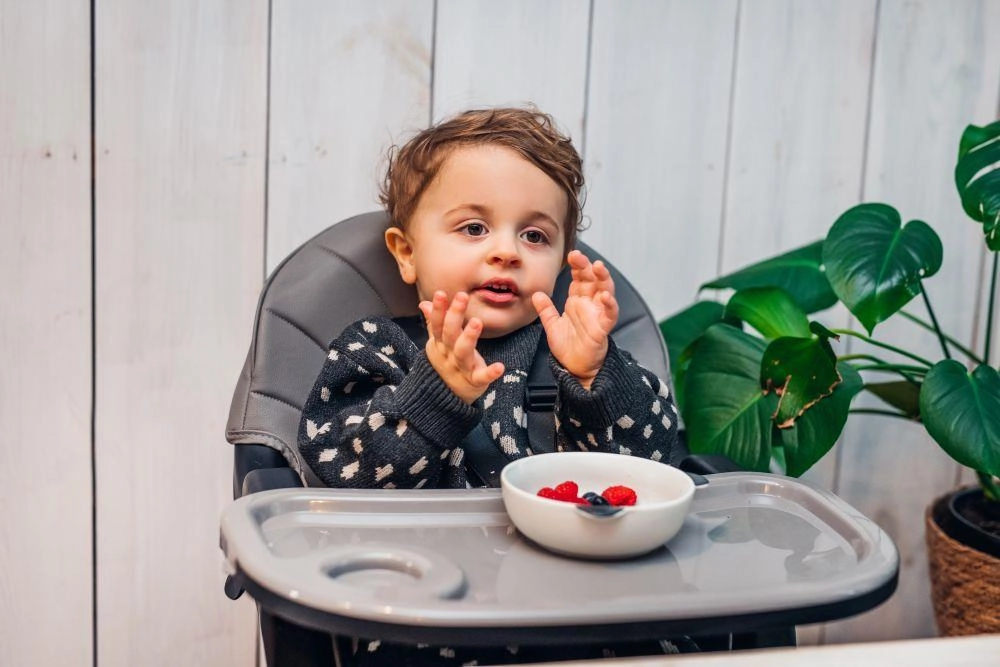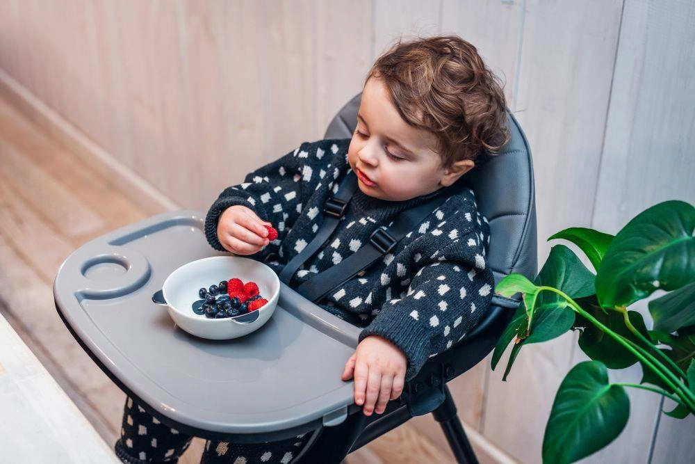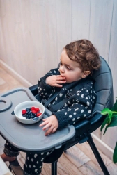 Une seule chaise pour toute la période de diversification et jusqu’à l’âge préscolaire : avec plateau pour les premiers repas, sans plateau pour manger à table, et petite chaise pour jouer et créer.