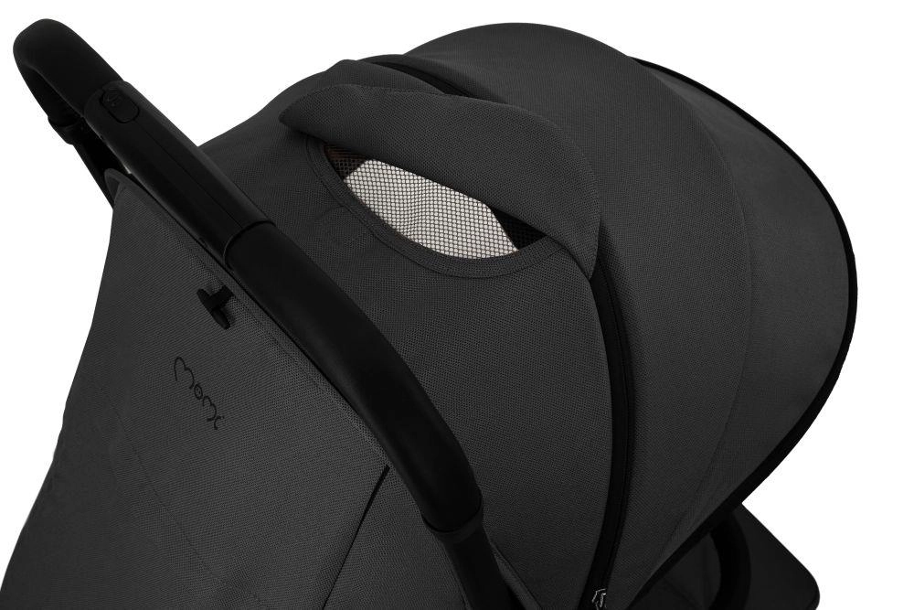 - Confort pour l’enfant – position allongée, repose-jambes 4 niveaux, canopy aéré avec deux fenêtres.