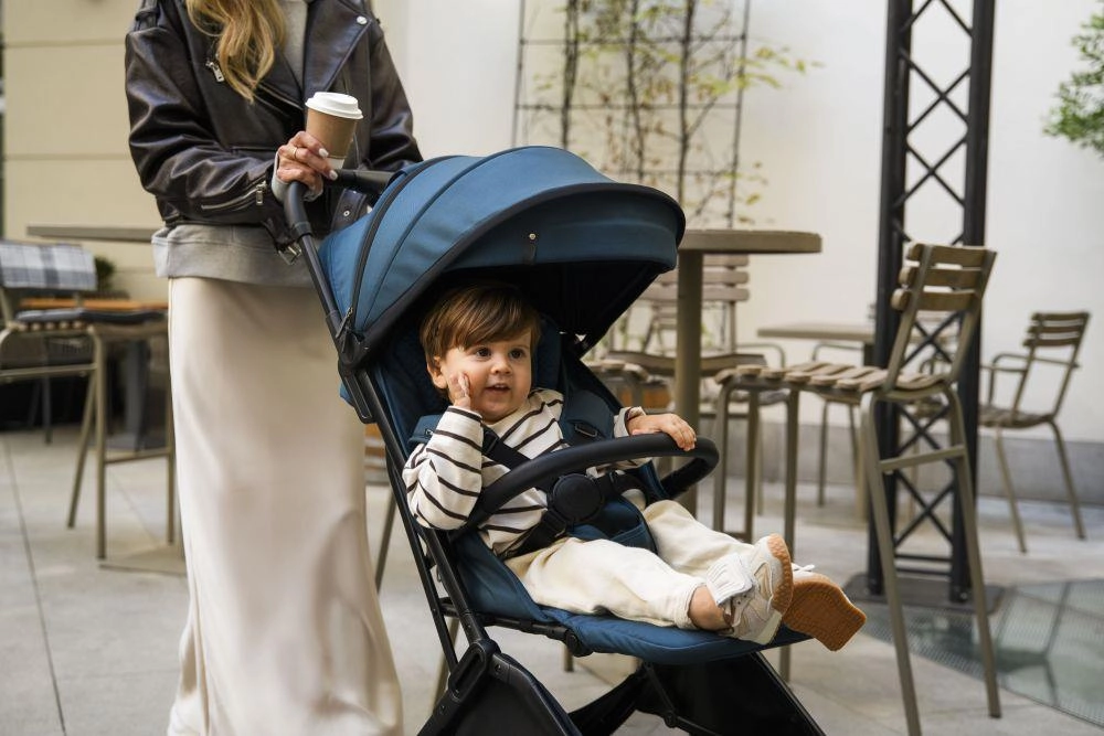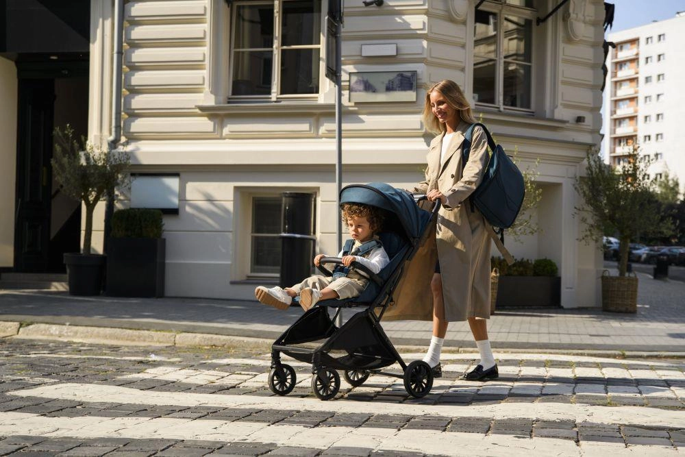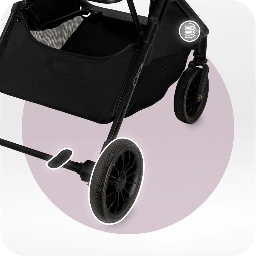MoMi ANDREA est idéale pour la ville comme pour les sorties. Grâce au système auto-pliant, elle se replie d’une simple pression en un format compact qui tient debout tout seul. La suspension et les roues EVA sans entretien (6,5" à l’avant, 7" à l’arrière) assurent une conduite fluide et une maniabilité aisée.