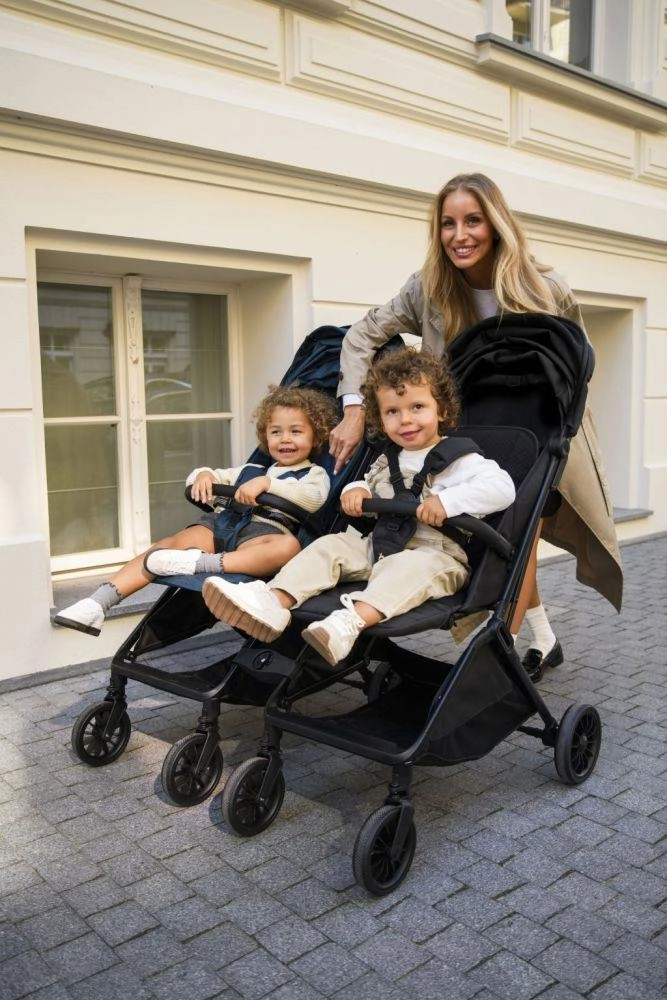Grâce à des adaptateurs optionnels, vous pouvez relier deux poussettes en une combinaison pratique pour frères et sœurs ou jumeaux – une solution flexible pour une famille qui s’agrandit.