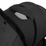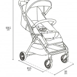 Le large canopy avec fenêtre de contact avec l’enfant et une seconde fenêtre de ventilation en mesh offre du confort pendant les journées chaudes. Le siège avec dossier réglable jusqu’à la position allongée et un repose-jambes à 4 positions s’adapte aux besoins du moment. La sécurité est assurée par des harnais à 5 points et une barre avant amovible.