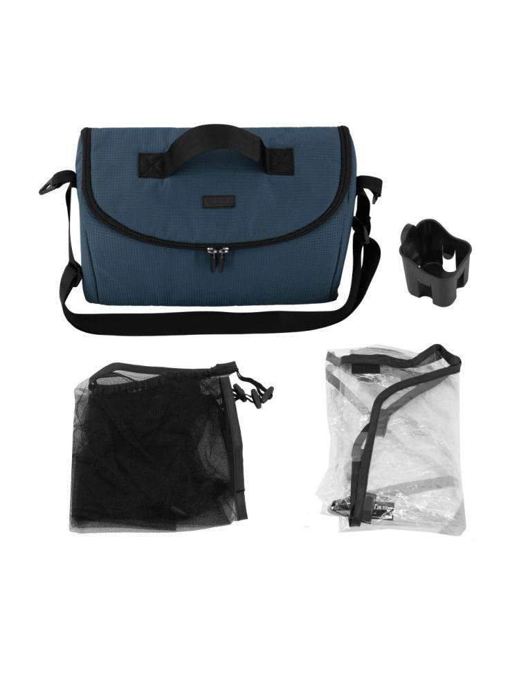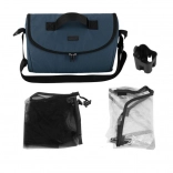 - Sac, couvre-jambes, housse de pluie, porte-gobelet, moustiquaire, dragonne de sécurité