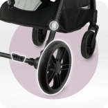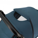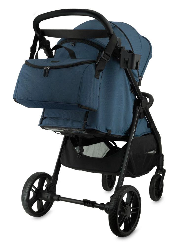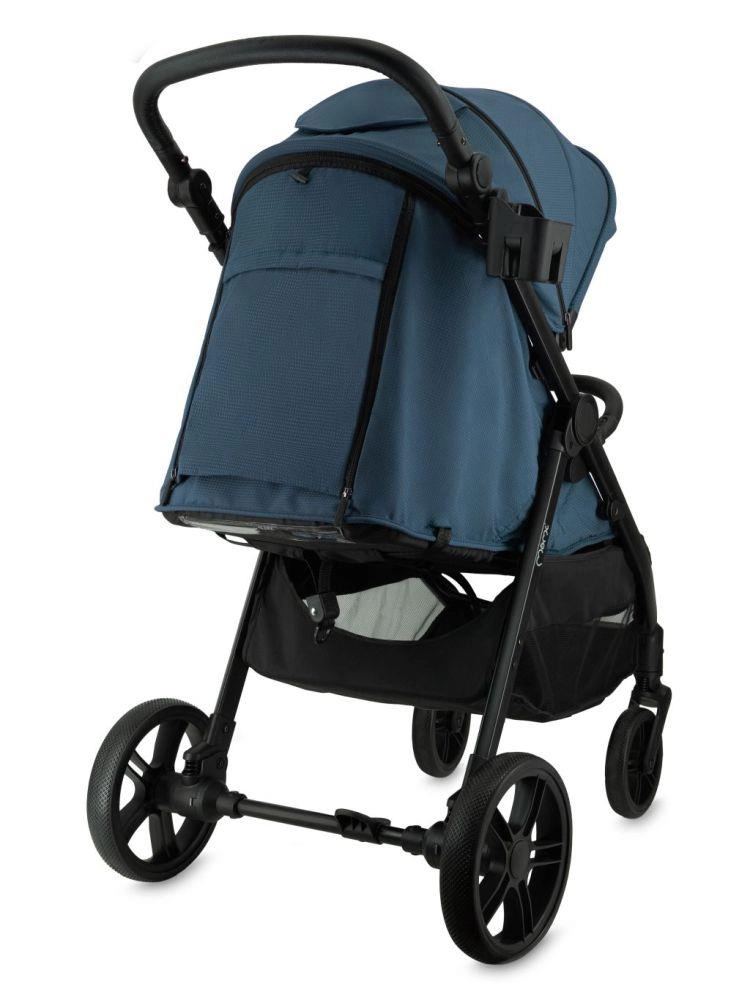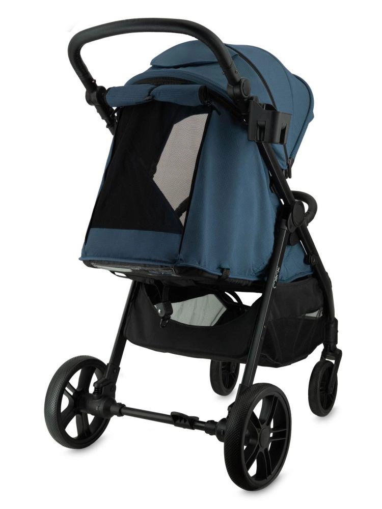 Siège large avec dossier et repose-jambes réglables, harnais à cinq points et capote extensible avec ventilation. Les parents apprécieront la poignée réglable en hauteur et le panier spacieux.