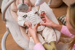 Choisissez entre le balancement latéral et le mouvement rotatif doux. Cinq niveaux de vitesse s’adaptent facilement à l’humeur et aux besoins du bébé.