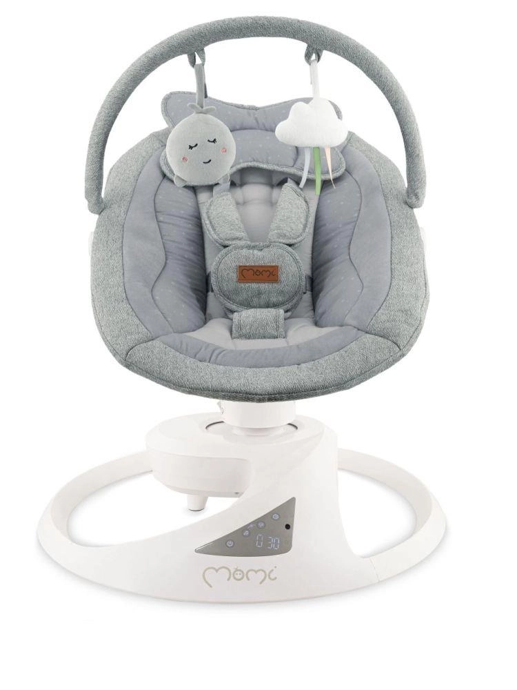 La balançoire électrique haut de gamme MoMi PEARL apaise et divertit votre bébé grâce à 2 modes de balancement (latéral et mouvement rotatif doux), à un siège pivotant à 360°, à 5 vitesses et à un minuteur. Pour encore plus de confort et de stimulation, elle offre le Bluetooth, des mélodies et sons de la nature, ainsi qu’une arche avec jouets et un harnais de sécurité 5 points.