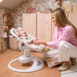 La balançoire MoMi PEARL allie design moderne, confort et fonctions intelligentes pour que votre enfant se repose paisiblement pendant que vous avez les mains libres. Le siège pivotant à 360° assure l’angle idéal et le contact avec le parent, tandis que deux modes de balancement avec cinq vitesses facilitent la détente et l’endormissement. Le minuteur intégré (8/15/30 min) économise l’énergie et propose un mode automatique pratique.