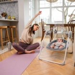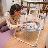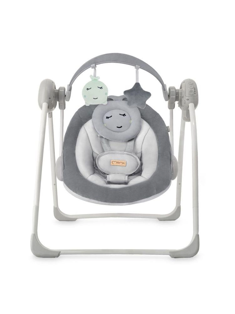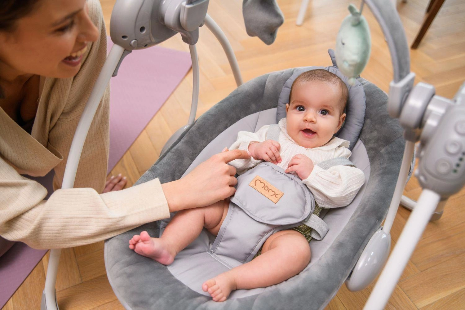 Le transat électrique à bascule MOMI Liss en élégant coloris gris apaise et divertit bébé grâce à 5 vitesses de balancement, un minuteur et 6 mélodies. Il dispose d’une structure pliante stable, d’un siège moelleux avec coussinet et de harnais 5 points pour une utilisation sûre et confortable à la maison comme en déplacement.