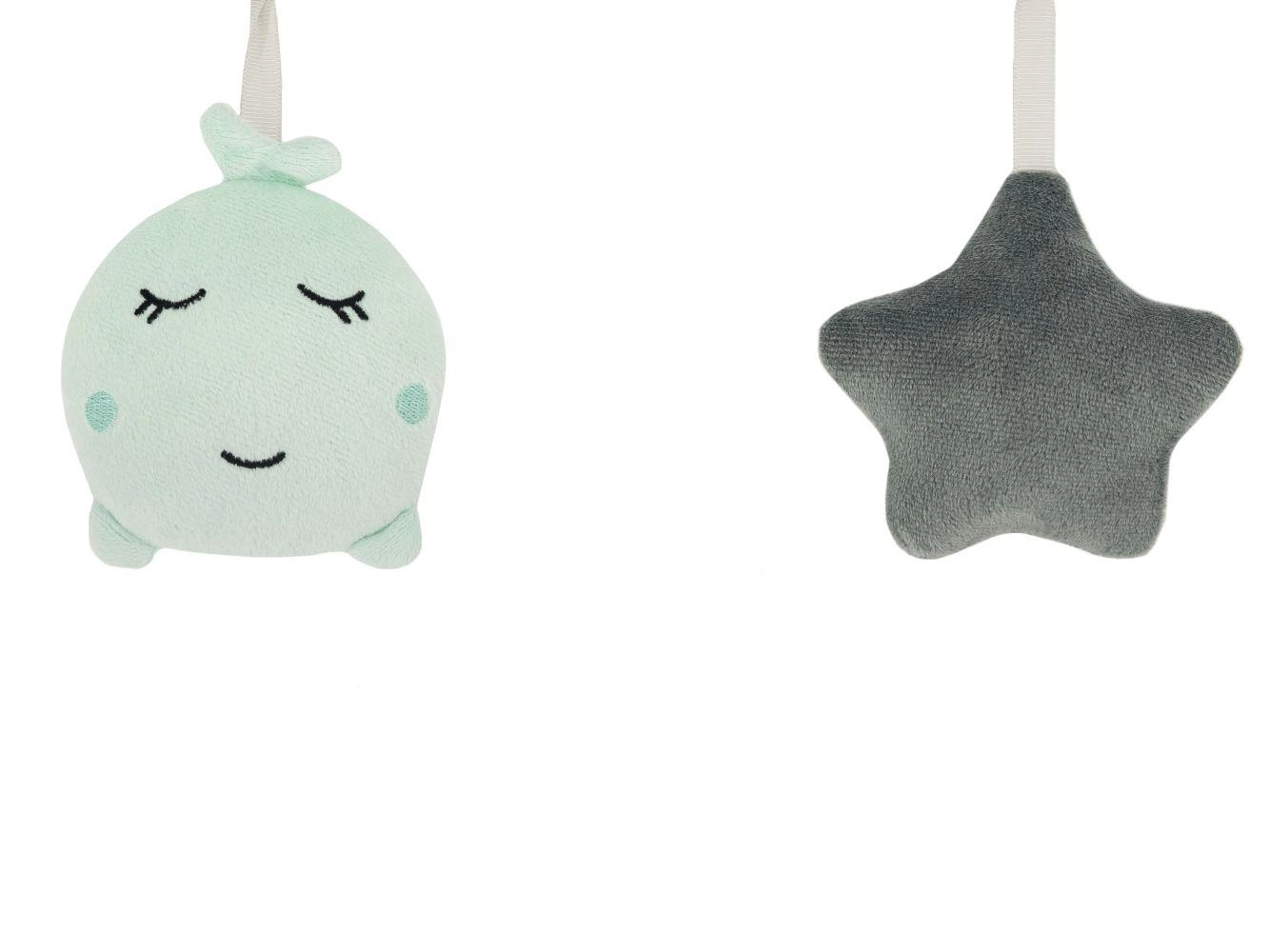 Deux jouets suspendus stimulent l’éveil et les agréables mélodies aident à calmer et divertir bébé.