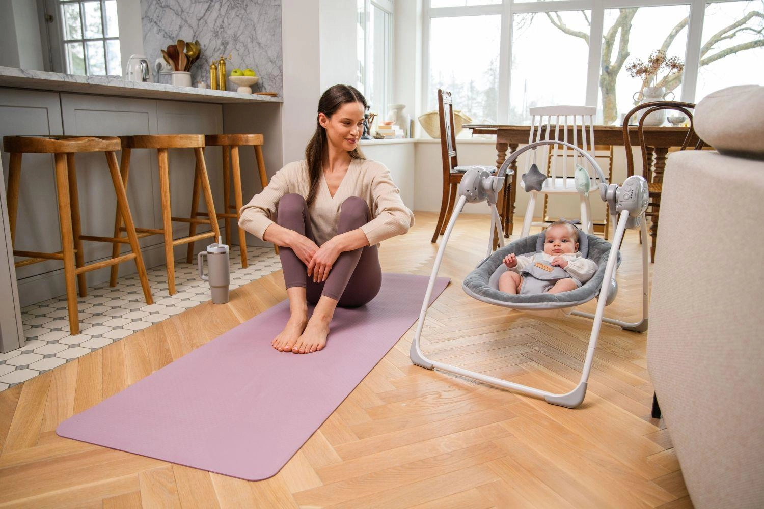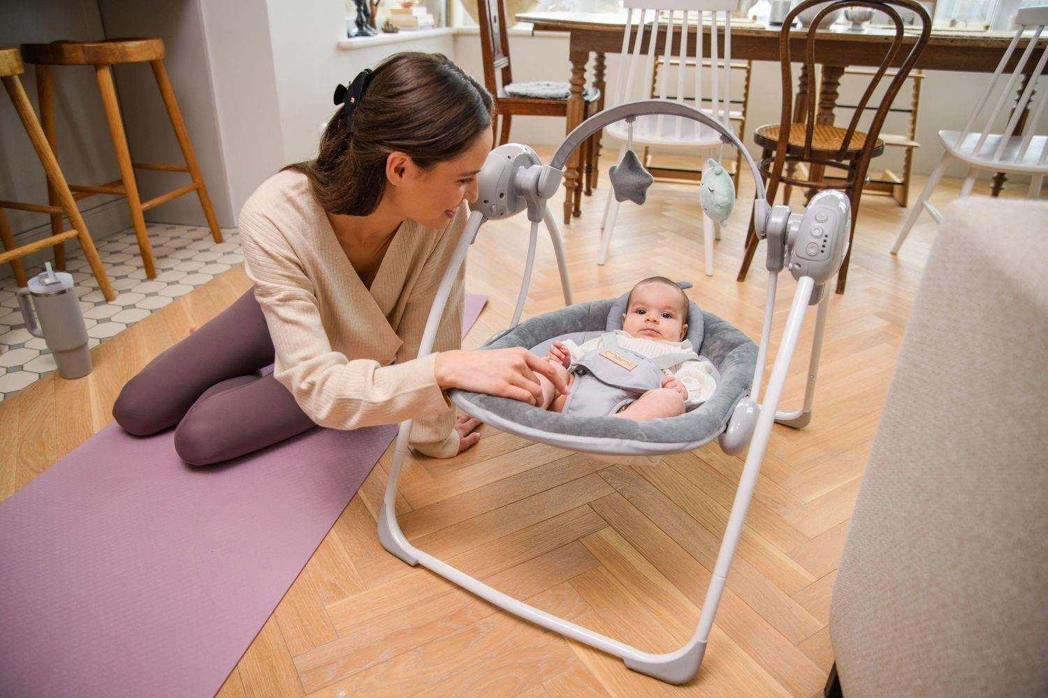 Un rembourrage doux, un soutien de la tête et un harnais 5 points avec une large sangle d’entrejambe assurent confort et sécurité à chaque balancement.