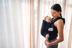 Portez votre enfant sur le ventre dès environ 3 mois et dans le dos à partir d’environ 12 mois. La capuche amovible, la poche et les élastiques aux extrémités des sangles facilitent l’usage au quotidien.