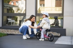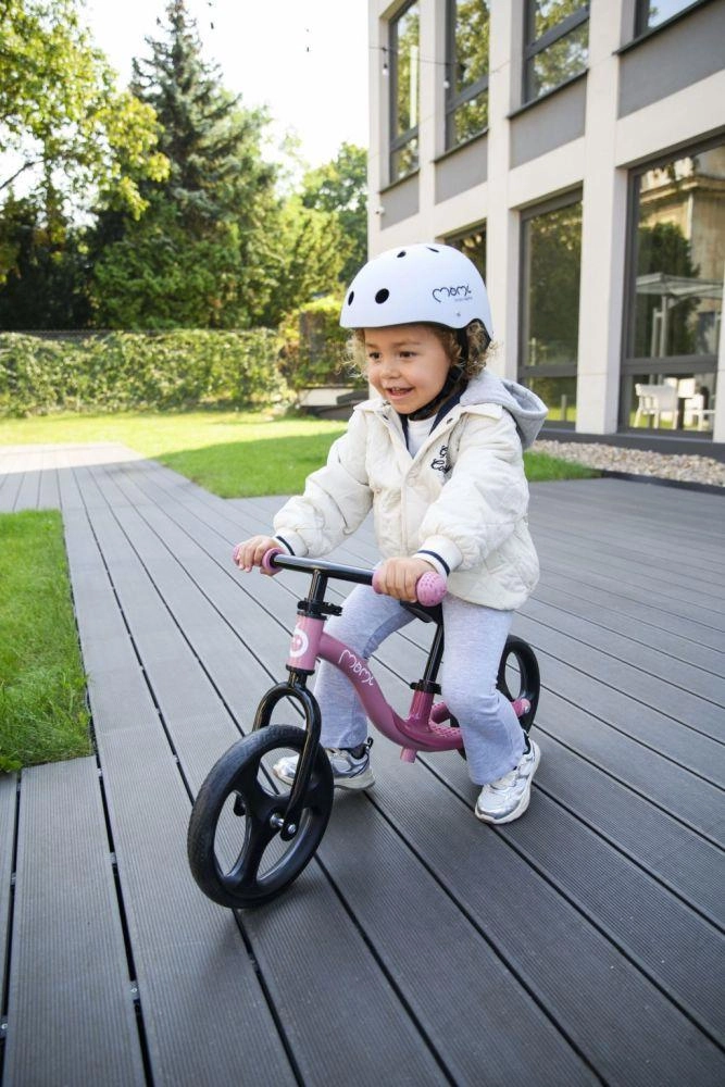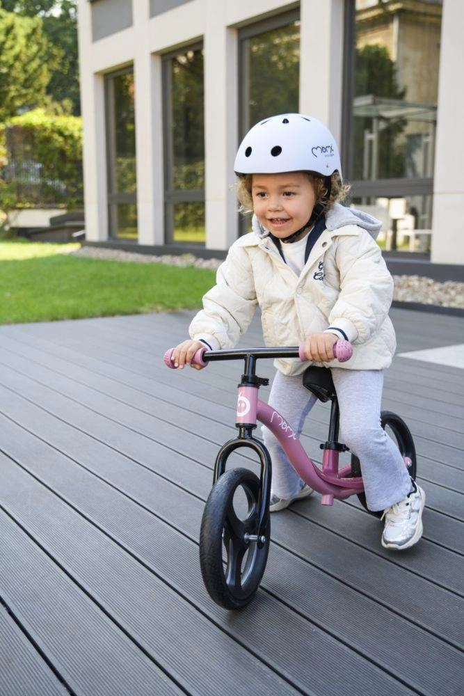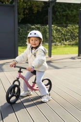 La hauteur de la selle et du guidon se règle sans outils en quelques secondes, de sorte que la draisienne accompagne facilement la croissance de l’enfant. Les roues en caoutchouc thermoplastique TPR amortissent les vibrations et assurent une conduite silencieuse et confortable sur le trottoir comme au jardin. L’absence de verrou de direction améliore la maniabilité et, en cas de chute, le guidon se replie, ce qui augmente la sécurité.