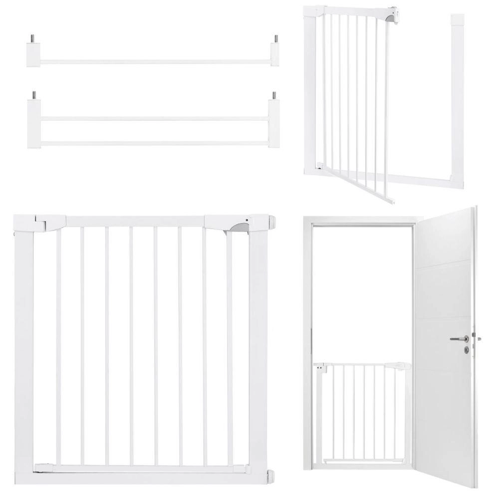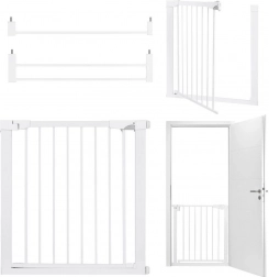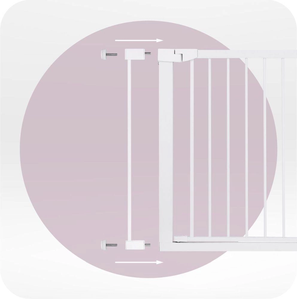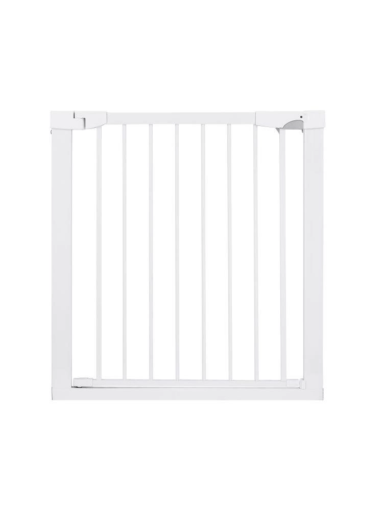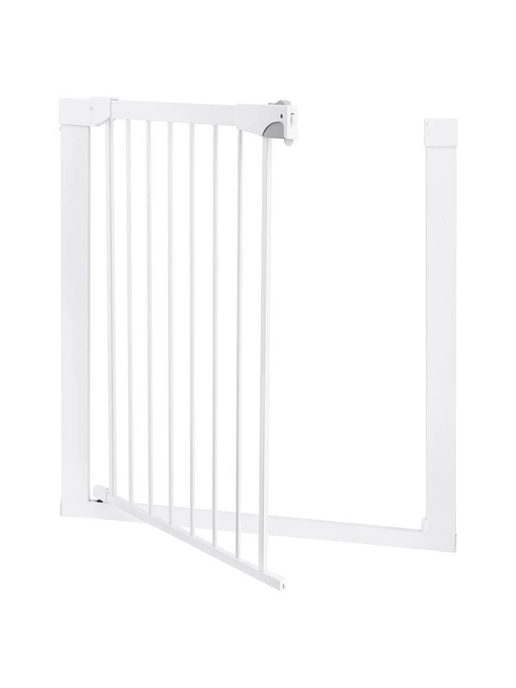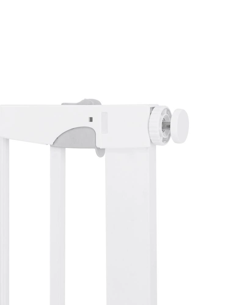MoMi PAXI Plus est une barrière en métal robuste au coloris blanc élégant, conçue pour une installation rapide sans outil. Grâce à sa largeur de base de 75–82 cm et à deux rallonges (7 cm et 14 cm), elle sécurise les passages jusqu’à 103 cm. L’ouverture bidirectionnelle et le verrou intelligent améliorent le confort et la sécurité au quotidien.