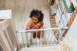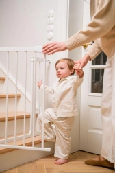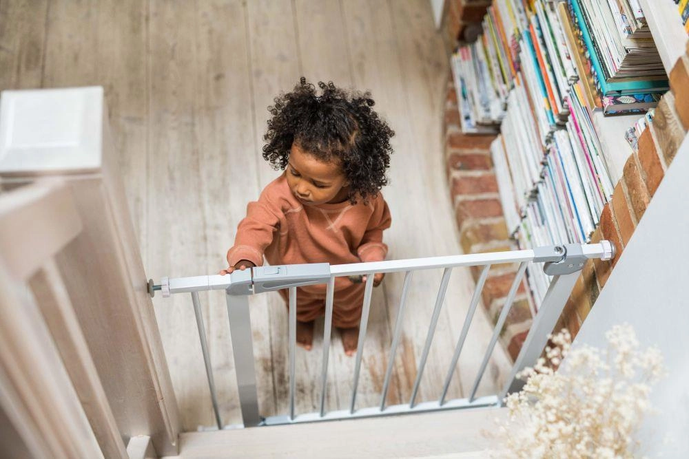 Pour une tranquillité maximale, la barrière est conforme à la norme européenne EN 1930 et aux exigences EN71-2 et EN71-3. À 90°, le portillon reste ouvert, ce qui facilite le transport des courses ou la manipulation d’une poussette. Ses lignes lisses sans arêtes vives et sa construction durable s’intègrent aux intérieurs modernes comme aux escaliers.