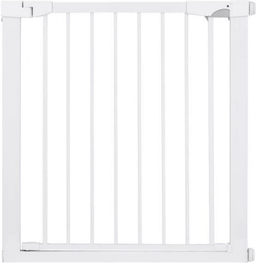 Le mécanisme de sécurité double empêche les enfants d’ouvrir la barrière. Le portillon s’ouvre dans les deux sens et reste ouvert à 90° pour un passage facile.