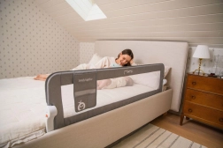 Le montage est simple et flexible : soit sous le matelas avec des sangles de sécurité, soit solidement vissé à la structure du lit. Une poche latérale pratique accueille les petits objets indispensables que vous souhaitez garder à portée de main. La barrière est en outre testée par des laboratoires internationaux afin de répondre à des exigences élevées de qualité et de sécurité.