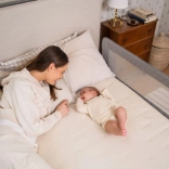 MoMi Lexi Plus est une barrière de lit fiable qui, grâce à sa structure robuste et à ses éléments arrondis et doucement rembourrés, assure un sommeil en toute sécurité à votre enfant. La majeure partie de la surface est en maille respirante, garantissant une excellente circulation de l’air et évitant la surchauffe. L’ouverture à 180° permet de se lever confortablement sans devoir retirer la barrière.