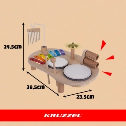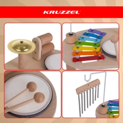 table d’éveil musical en bois KRUZZEL avec cymbales, tambours et hochets