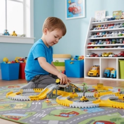 Créez votre propre circuit sur le thème du chantier : grâce aux pièces flexibles à clipser, composez lignes droites, virages, boucles et pont. Les enfants peuvent modifier sans cesse les configurations, tester de nouveaux tracés et les enrichir avec panneaux, barrières et arbres. Des couleurs vives, des accessoires fonctionnels et une voiture à pile garantissent un jeu dynamique et captivant.