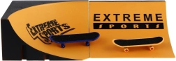 La rampe noire et orange offre une expérience de skate réaliste en version mini – idéale pour sauts, grinds et combos.