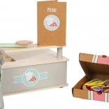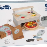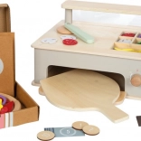 Cette pizzeria en bois de haute qualité de small foot est un excellent complément à toute cuisine pour enfants. Le four avec bouton rotatif qui clique sert aussi de garde‑manger et de comptoir. Les enfants peuvent cuire, couper et servir la pizza sur une pelle en bois et, grâce aux nombreux accessoires, jouer au chef comme au vendeur.